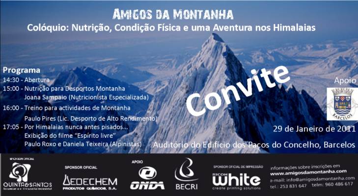 - Palestra Expedição Portuguesa de Bigwall ao KarakorumOctober 15, 2010No próximo dia 20 de Outubro cerca das 21h decorrerá na Escola Superior de Hotelaria e Turismo do Estoril (ESHTE) a palestra de apresentação da Expedição Portuguesa de Bigwall ao Karakorum. Esta actividade levada a cabo por Ana Silva, Bruno Gaspar, Leopoldo Faria e Rui Rosado decorreu entre os meses de Julho e Agosto deste [...]